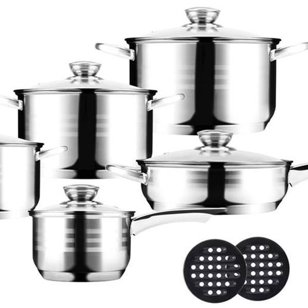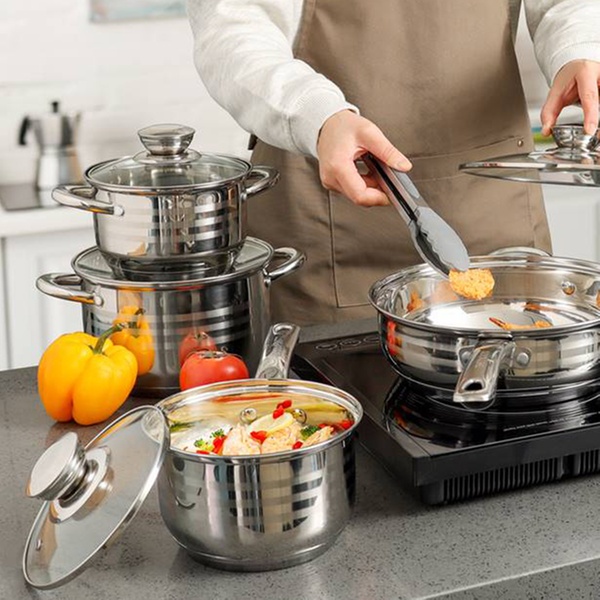 Avec une poêle et une batterie de casseroles de différentes capacités et dimensions, chaque pièce est équipée d'un couvercle en verre robuste, permettant une cuisson efficace et une visibilité optimale des aliments.