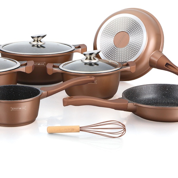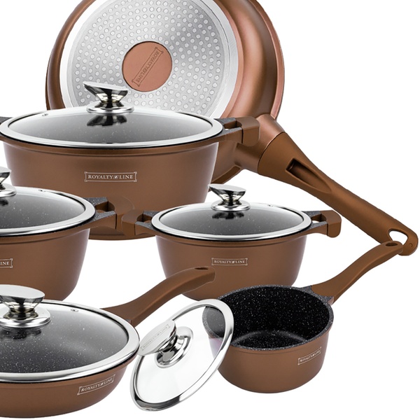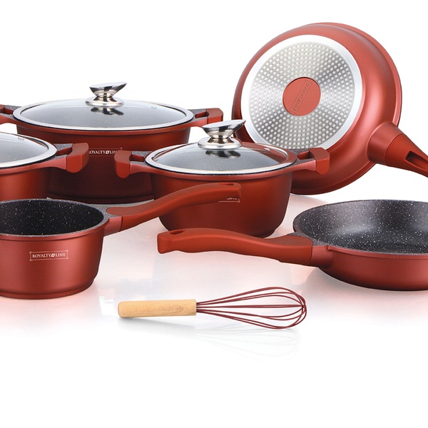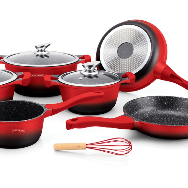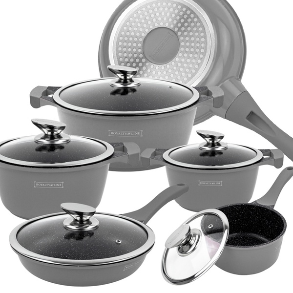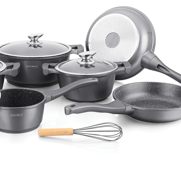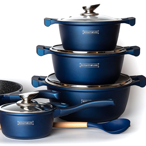 Batterie de cuisine Royalty Line de 13 pièces : marbre antiadhésif et polyvalence