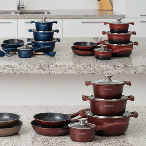 Fabriquée en fonte d'aluminium avec un revêtement en marbre antiadhésif, la batterie de cuisine Royalty Line 13 pièces vous permet une cuisson saine et sans gros efforts. Cet ensemble complet allie performance professionnelle et design moderne, répondant à vos besoins.