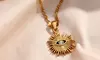 Collier doré soleil et œil, plaquage en or 18 carats