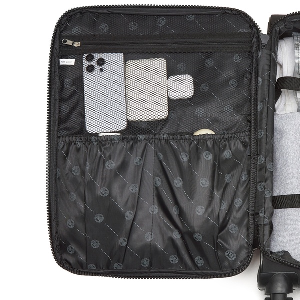 - Côté gauche avec poches en filet et élastiques pour un rangement organisé
