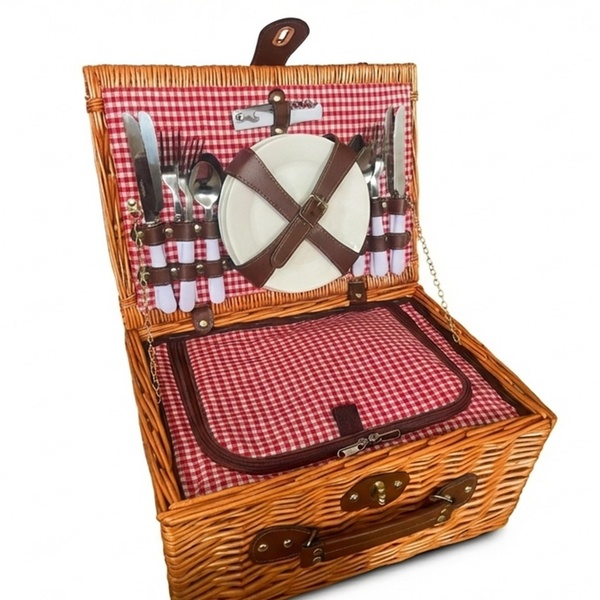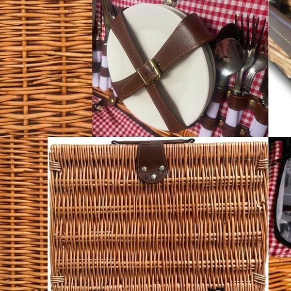 Profitez d'un déjeuner élégant en plein air avec cet ensemble de pique-nique complet de 21 pièces, équipé d'un compartiment isotherme et d'une vaisselle raffinée pour quatre personnes