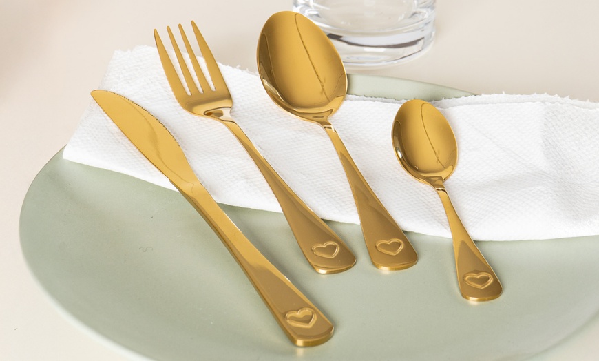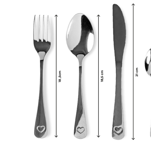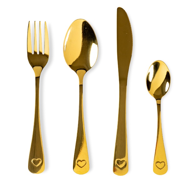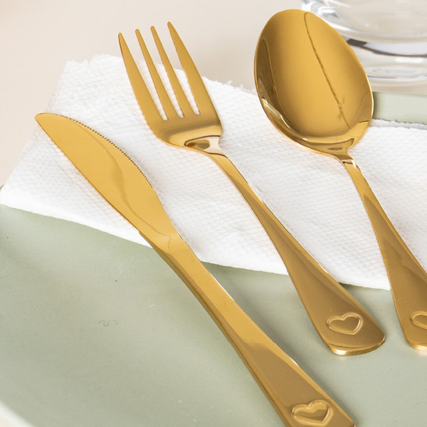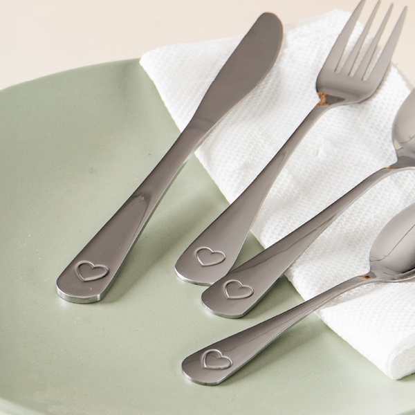 Un élégant service de couverts 24 pièces avec un détail cœur raffiné, fabriqué en acier inoxydable durable, idéal aussi bien pour un usage quotidien que pour les grandes occasions.