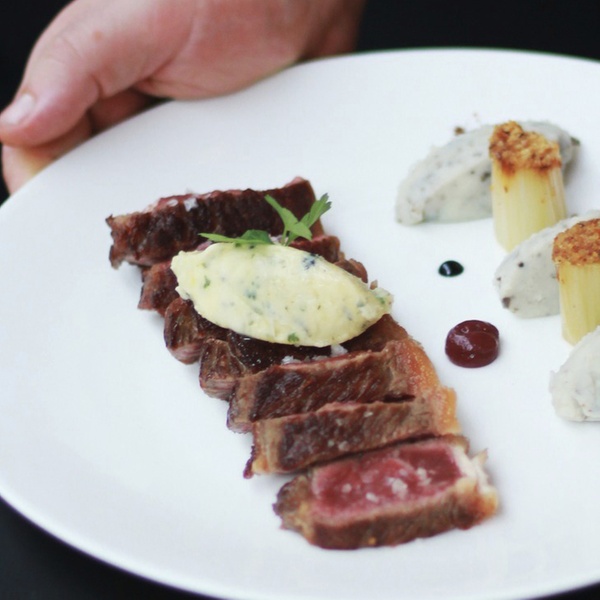 Plin pasta gevuld met Fassona, fond en Parmezaanse kaas