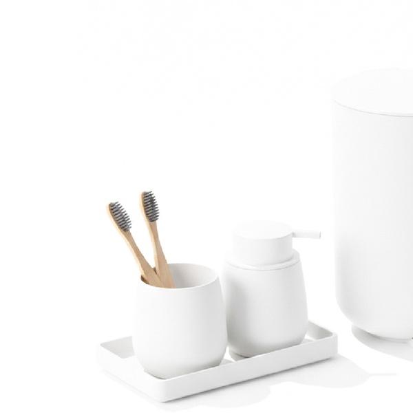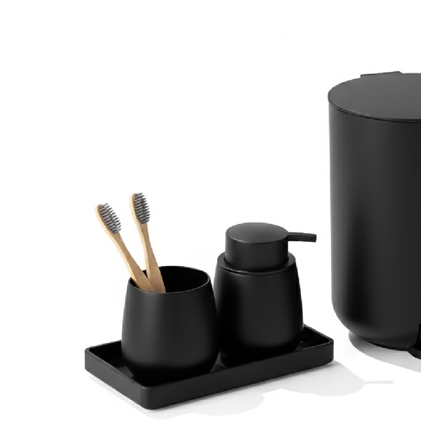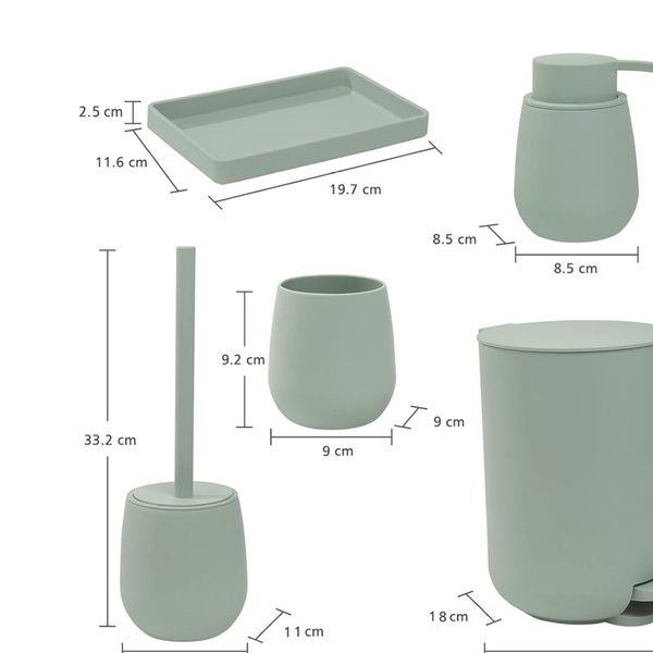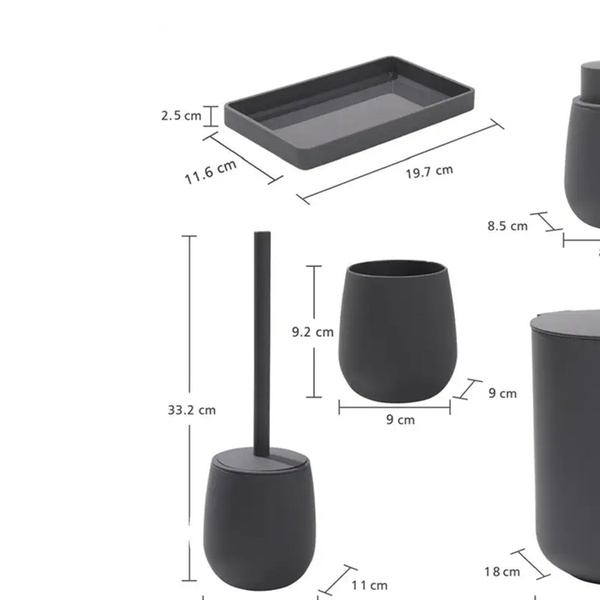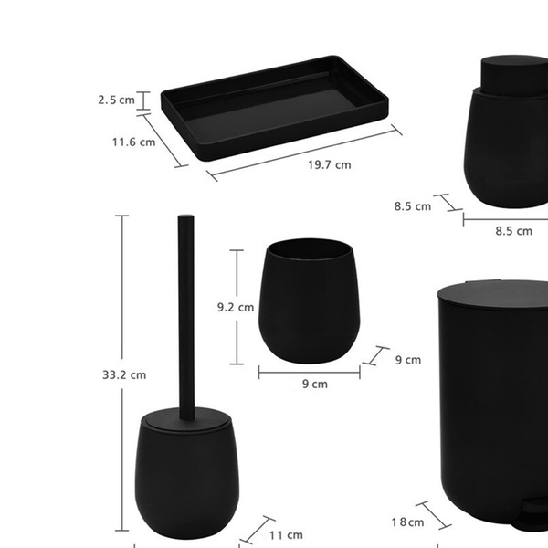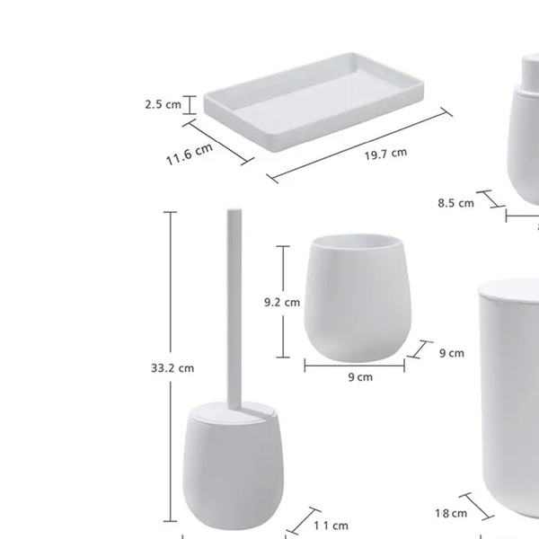 • Comprend tout ce dont vous avez besoin pour organiser votre salle de bain avec style : poubelle à pédale, brosse et support pour toilettes, distributeur de savon, porte-brosses à dents, tasse multifonction et un plateau pratique pour accessoires.