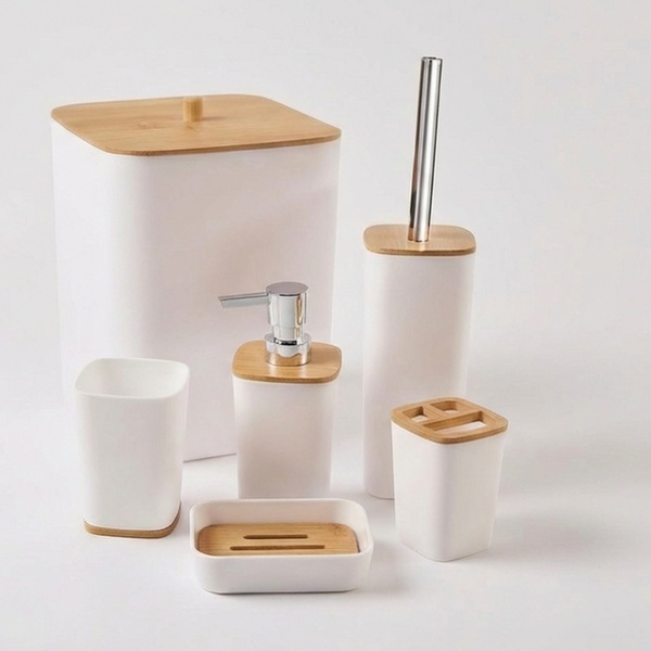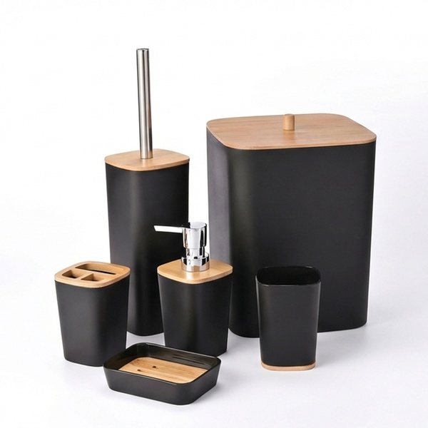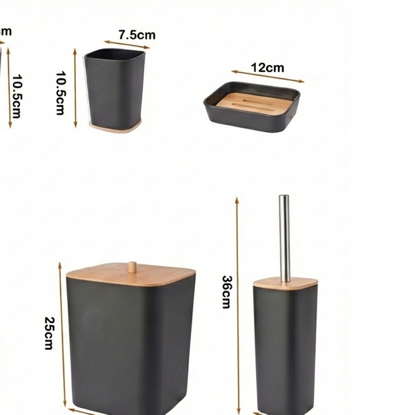 Transformez votre salle de bain en un espace moderne et ordonné grâce à ce set complet de 6 accessoires. Alliant l'élégance du noir mat à la chaleur du bambou naturel, ce kit est conçu pour durer grâce à des matériaux résistants à la corrosion.