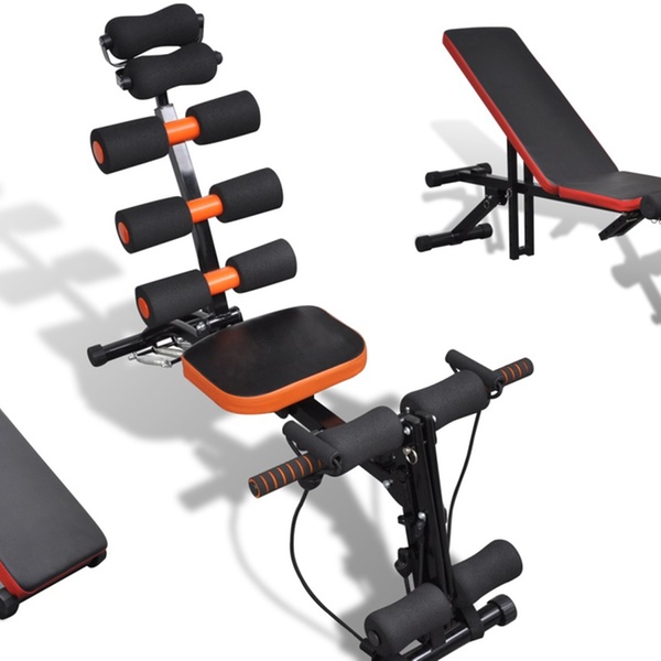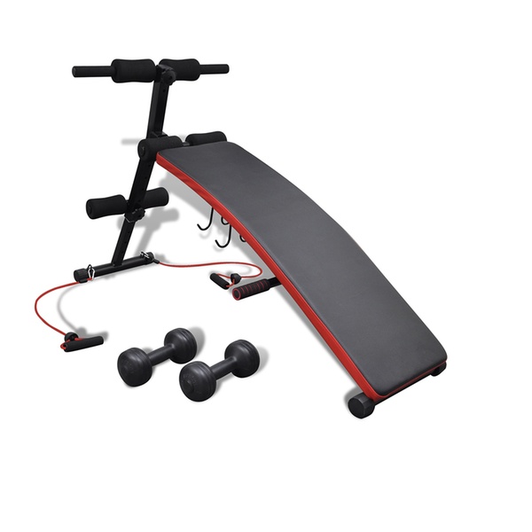 - Banc d’entrainement abdominal, avec deux haltères et deux cordes à sauter