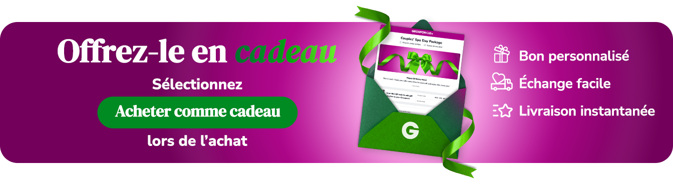 Groupon vend le coupon et encaisse votre paiement ; le Vendeur fournit le service. Pour toute assistance ou question, veuillez vous rendre dans la section Service Membre.