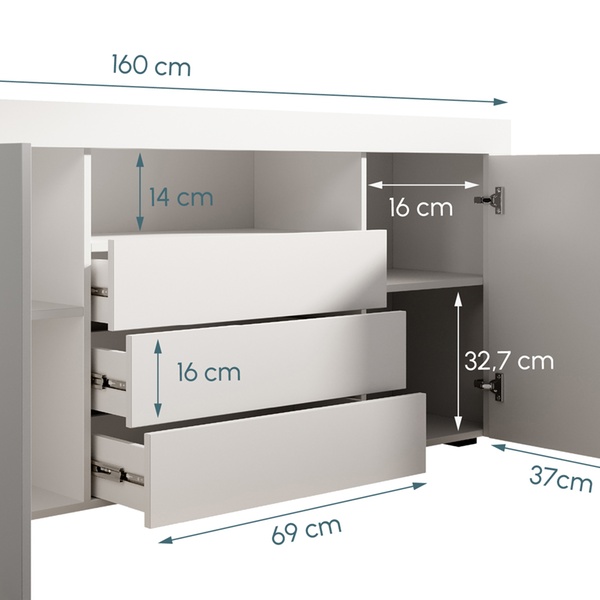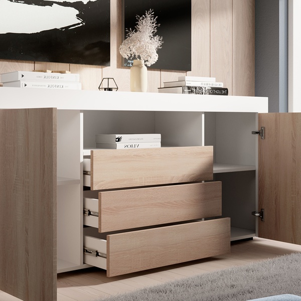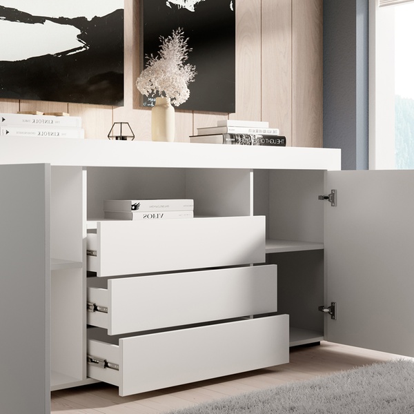 - Finition mate : structure, façades et portes en mélamine résistante et facile d’entretien