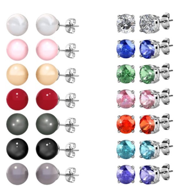 DE0292 - Lot de 7 paires de boucles d'oreilles perles autrichiennes