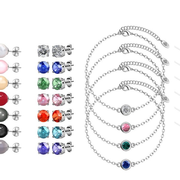 Couleurs des boucles : Bleu Aquamarine, Blanc Cristal, Vert Garnet, Orange Hyacinth, Rose Clair, Bleu Saphir, Violet Tanzanite