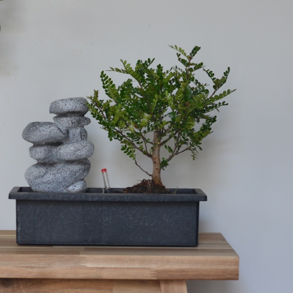 - Willekeurige bonsaivariëteit: Carmona, Ligustrum, Sagarethia, Zelkova of Ficus