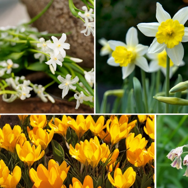 - Narcissus Topolino, Crocus sp. Goldilocks, Allium Siculum, Chionodoxa Luciliae Alba, Allium Sphaerocephalon, Muscari Armeniacum.
