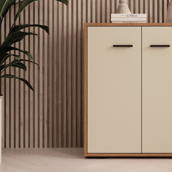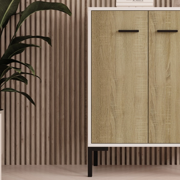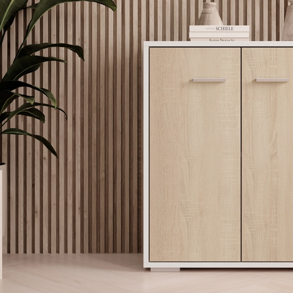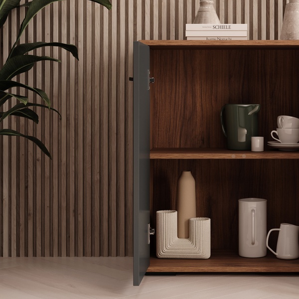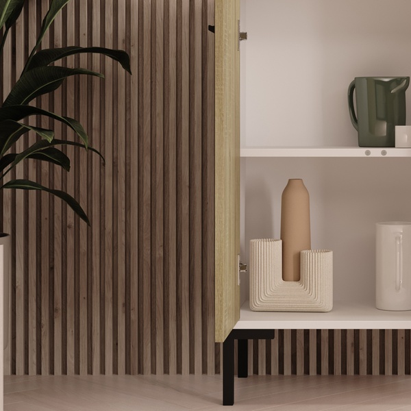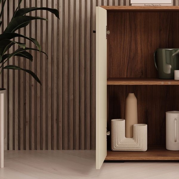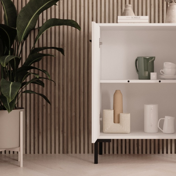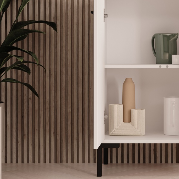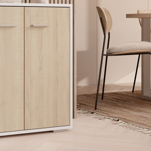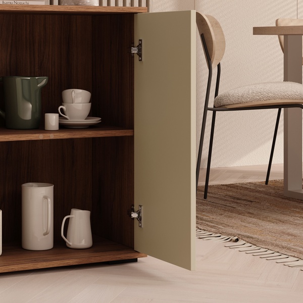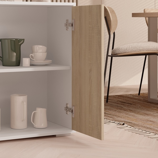 Ce buffet contemporain polyvalent offre un grand espace de rangement et s'adapte à tous les intérieurs grâce à son design neutre.