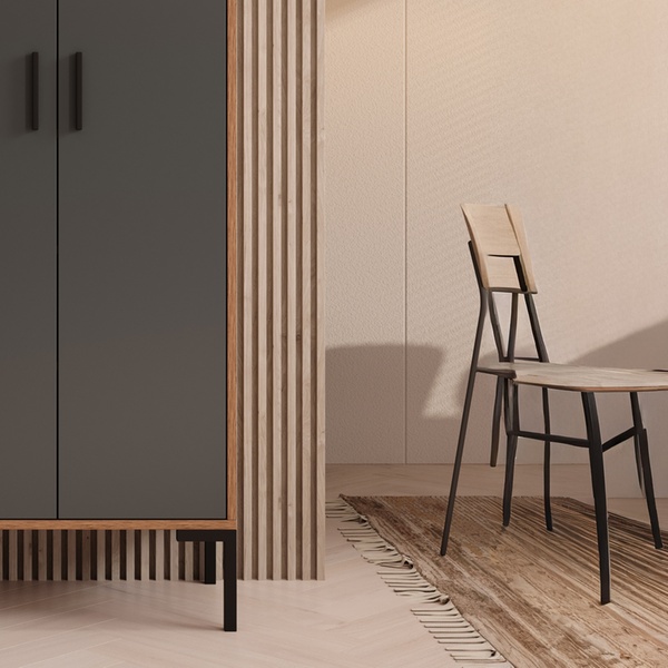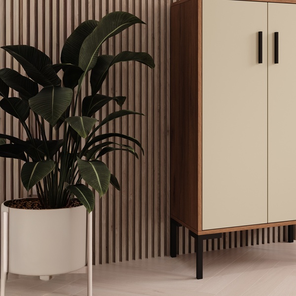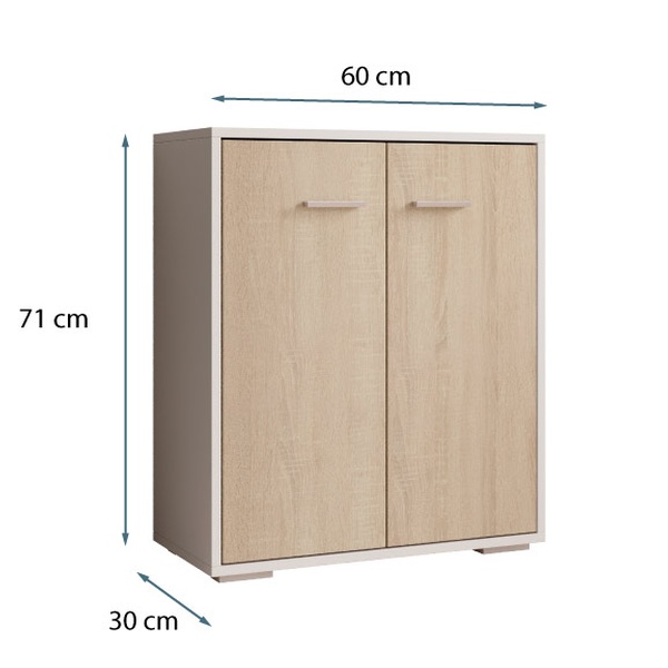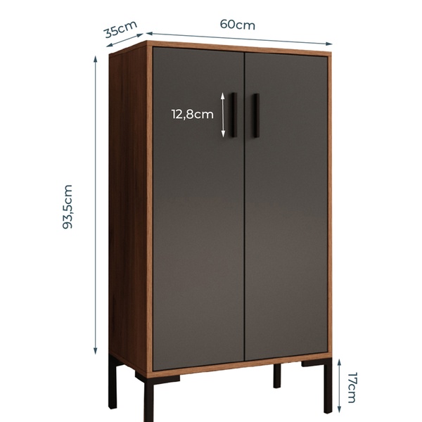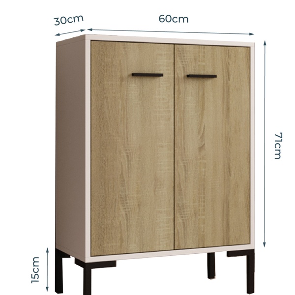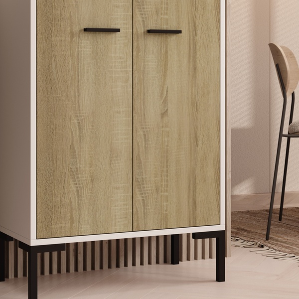 - Aménagement : Équipé de deux compartiments avec portes et poignées métalliques pour un espace de rangement optimal.