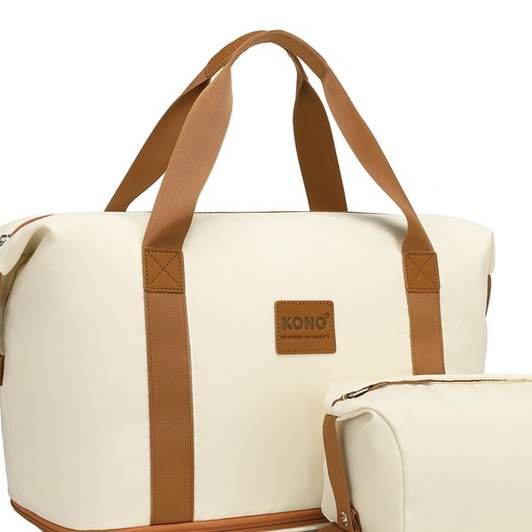 Conception astucieuse : le sac de voyage est extensible grâce à un zip inférieur pour augmenter sa capacité. Un passant à l'arrière permet de le fixer à la poignée de la valise.