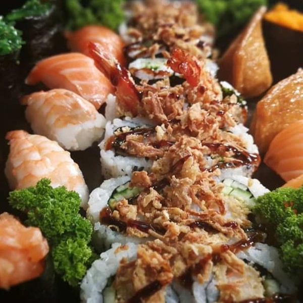Eet onbeperkt soepen, sushi, sashimi, warme voorgerechtjes, wokgerechtjes, oesters, sint-jacobsvrucht, garnalen, zeetong, lamskotelet, kip, rundvlees, fruit, ijs en taartjes