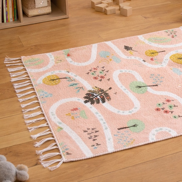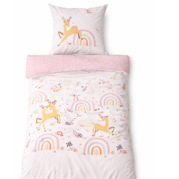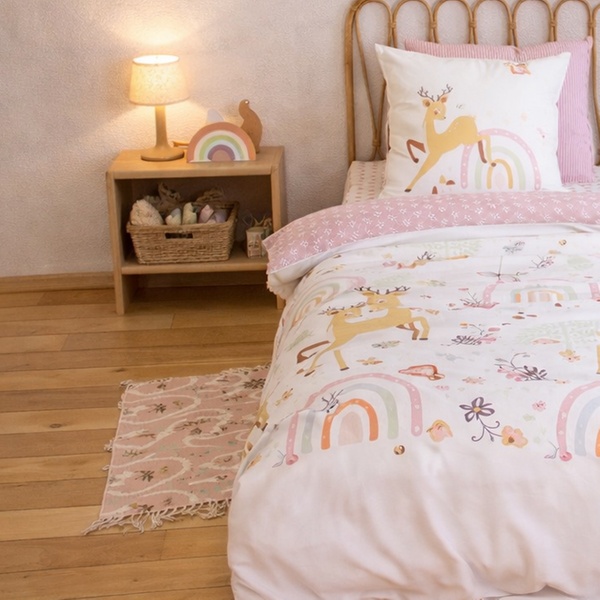 - Design Bambina rose : couleurs douces, arcs-en-ciel et motifs poétiques