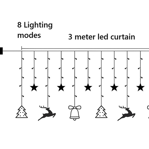 Avec 4 jolis motifs et 8 modes d’éclairage, ce rideau de Noël magique à LED crée une ambiance festive dans la maison ou le jardin