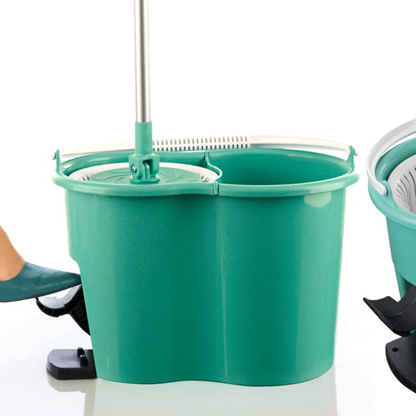 Disposant d’un seau d’eau divisé en 2 et de 2 têtes de rechange, ce balai rotatif est conçu pour atteindre les zones difficiles à nettoyer