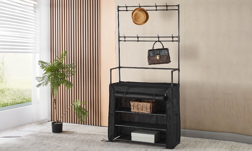 Structure multifonctionnelle avec un double porte-manteau et 8 crochets pour manteaux, sacs, chapeaux et accessoires