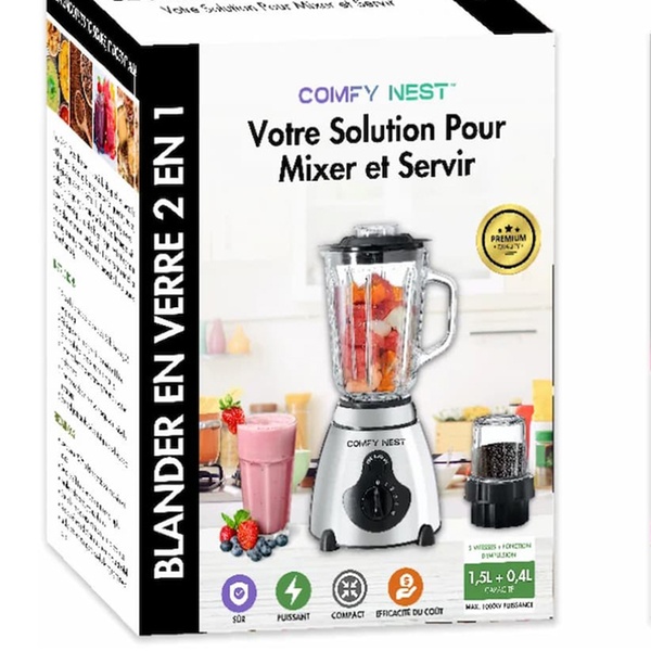 Ce blender en verre 2 en 1, avec son puissant moteur de 800 W, assure un mélange homogène et rapide pour toutes les recettes.