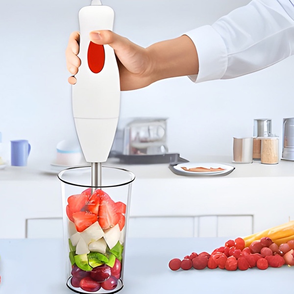 Ce mixeur plongeant est l'allié indispensable de votre cuisine : il est conçu pour hacher, mélanger, mixer et râper rapidement et pour vous offrir une consistance parfaite et uniforme.