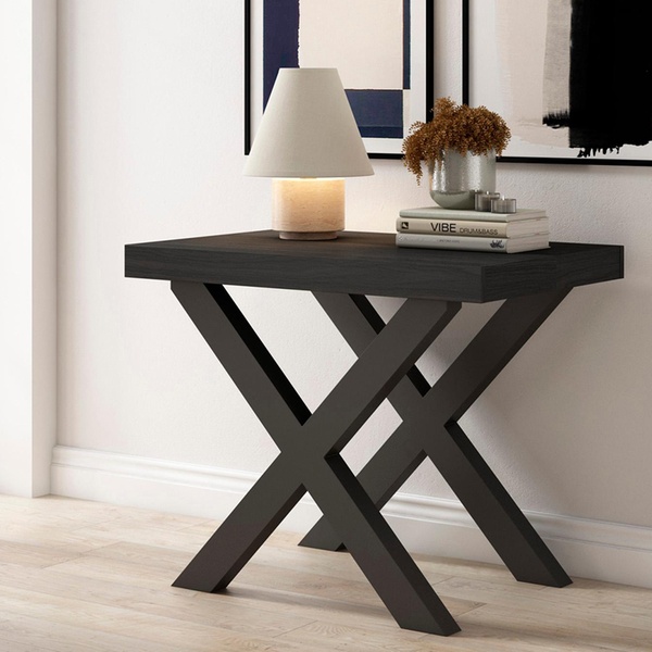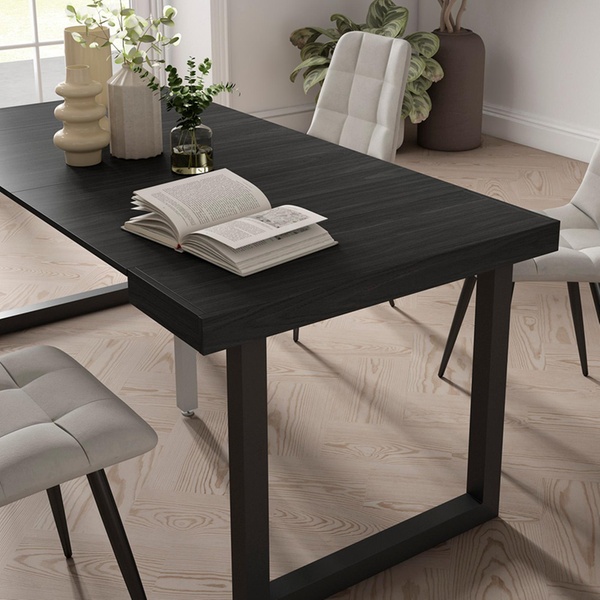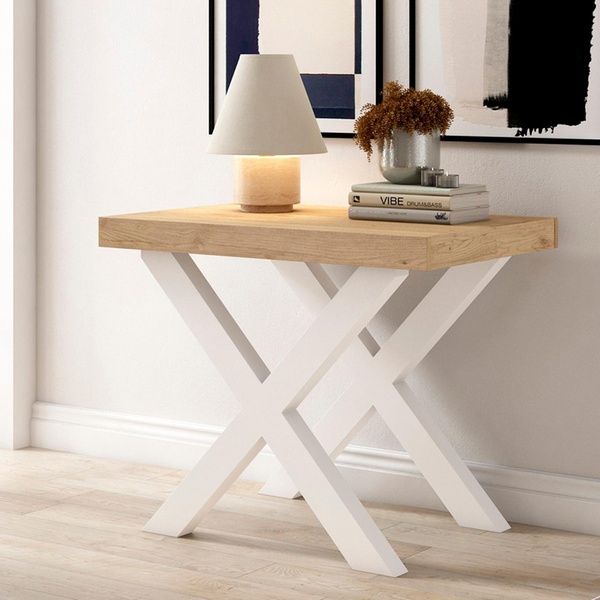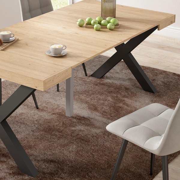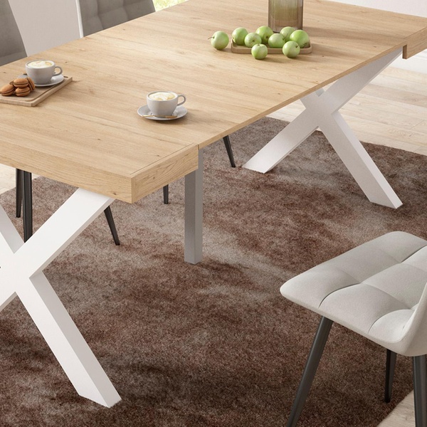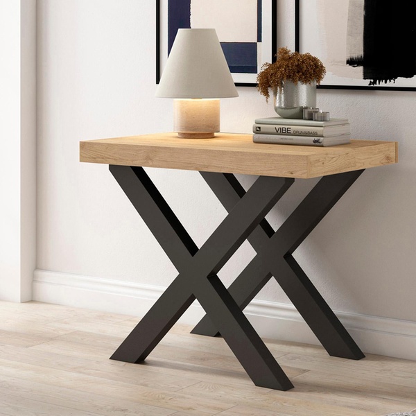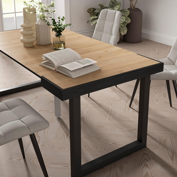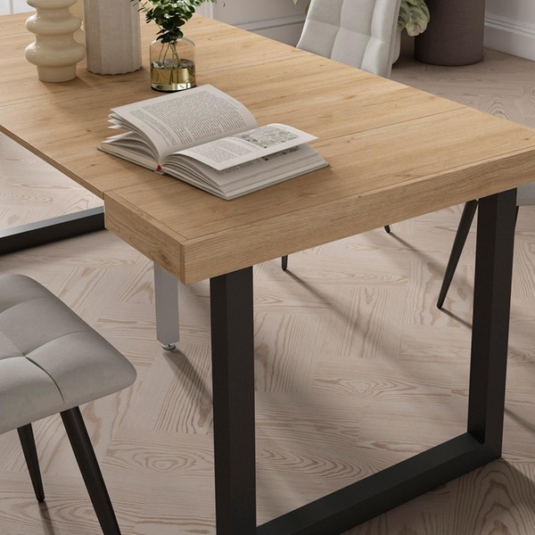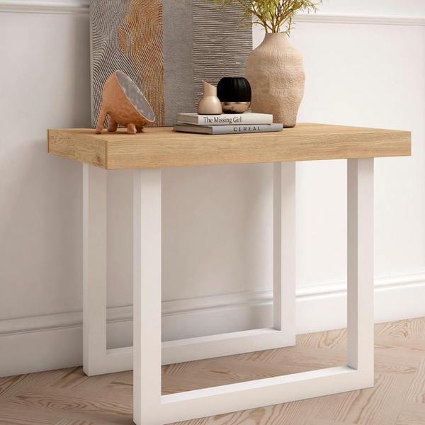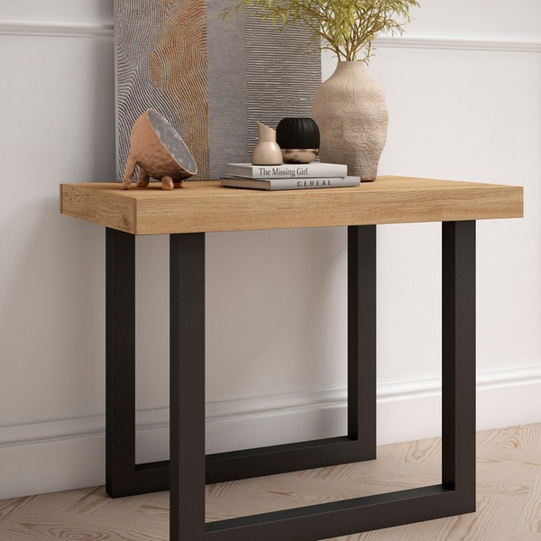Doté de pieds en bois massif et d'un mécanisme télescopique en aluminium, cette table console extensible peut accueillir confortablement jusqu'à 8 personnes.