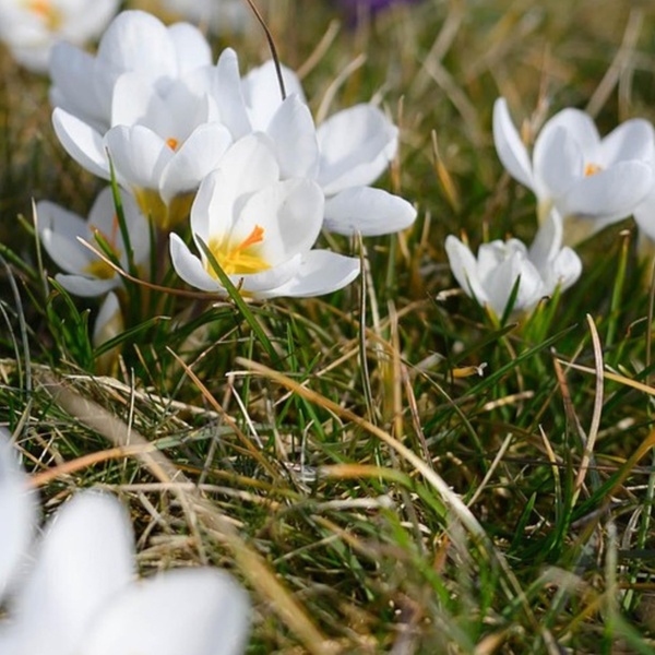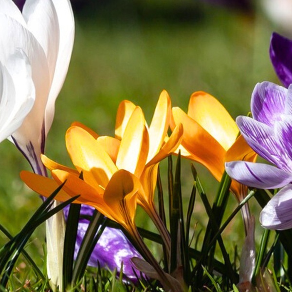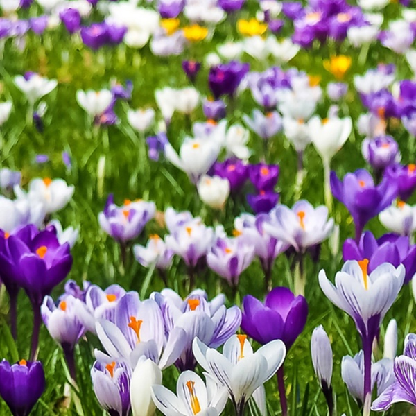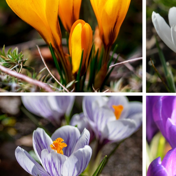 Ce mélange de crocus à grandes fleurs offre des couleurs éclatantes pour égayer le jardin dès la fin de l'hiver.