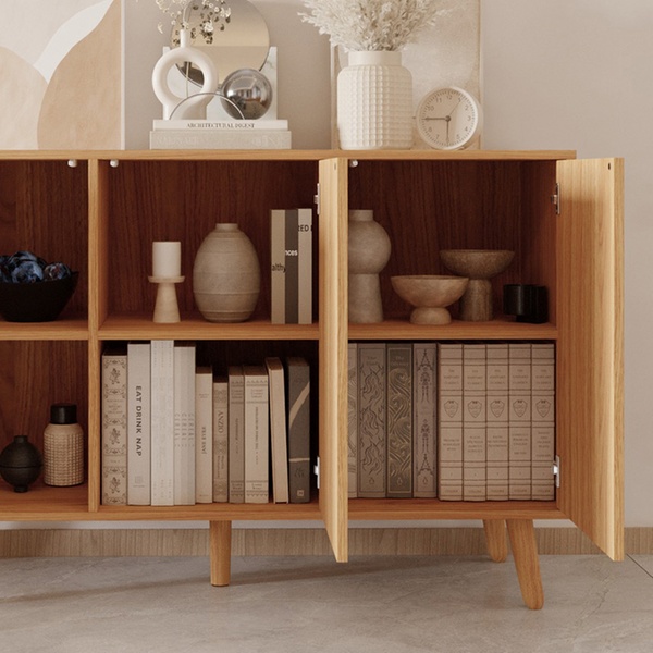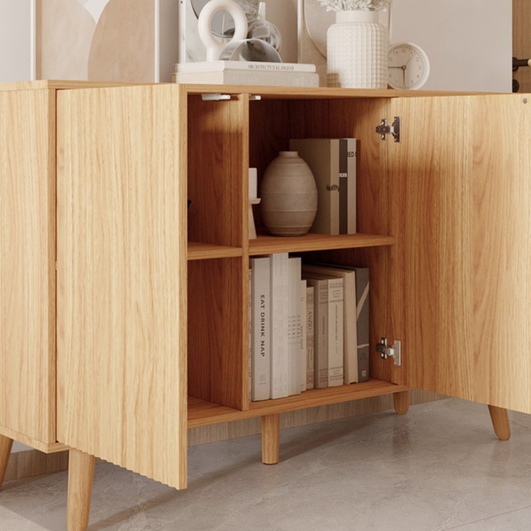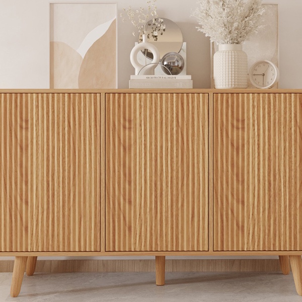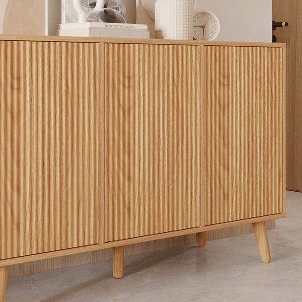 Un design nordique moderne avec des portes acanalées et un grand espace de rangement, idéal pour allier esthétique et fonctionnalité.