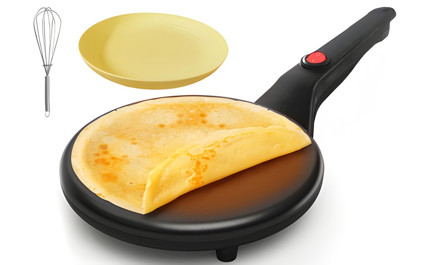 Révolutionnez vos petits-déjeuners avec cette crêpière électrique plongeante permet de cuire crêpes, pancakes et galettes en quelques minutes. Sa surface antiadhésive vise à vous offrir de bons résultats sans ajout de graisses ni huiles.