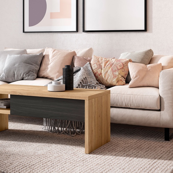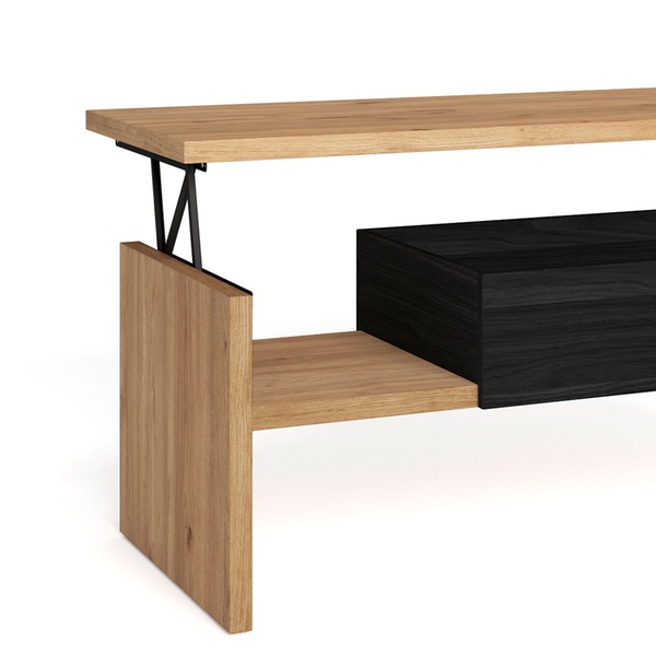 - Table basse élevable, chêne et noir, 110 x 50 x 45 cm