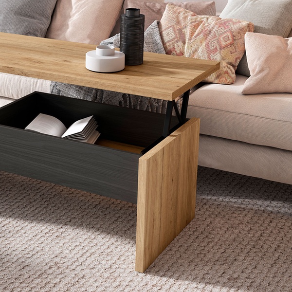 Avec une surface élévable, cette table centrale offre confort et style pour toutes les activités du quotidien.