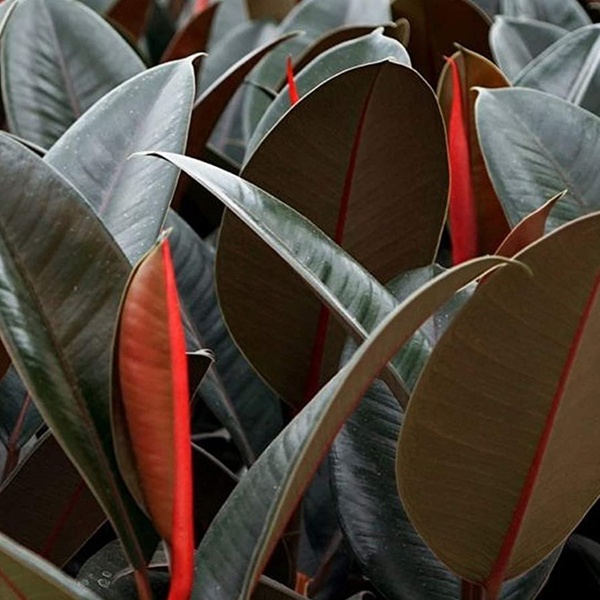 - Grandes feuilles de forme ovale, brillantes et vert foncé