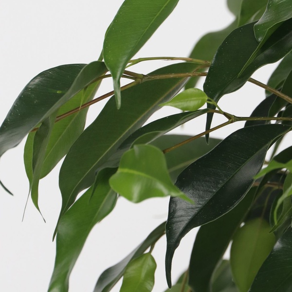 - Deze plant groeit veel donkergroene en gladde bladeren aan iets hangende takken