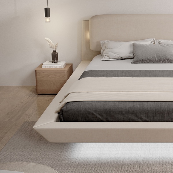 Apportez style et confort à votre chambre avec le lit flottant Diana. Son design suspendu et ses LED intégrées créent une ambiance chaleureuse et moderne, idéale pour se détendre. Revêtu de tissu en lin doux et durable, il allie élégance et praticité.