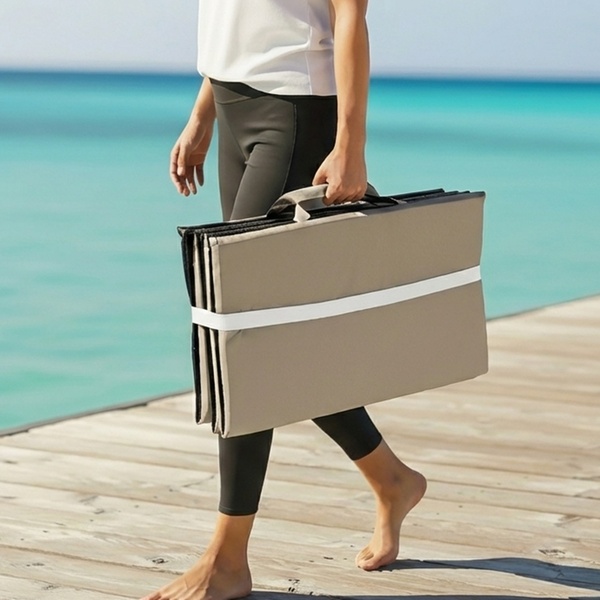 Tapis de plage et de détente pliable, résistant à l'eau et au sable, avec poignée de transport pratique