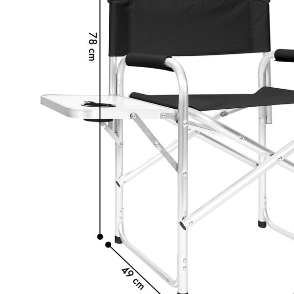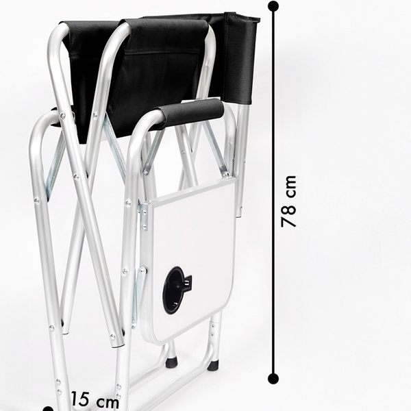 Cette chaise pliante se plie en quelques secondes en un seul mouvement et dispose d'un plateau très pratique