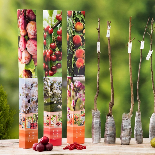 - Ensemble d'arbres fruitiers comprenant un pommier, un poirier, un cerisier, un prunier et un pêcher