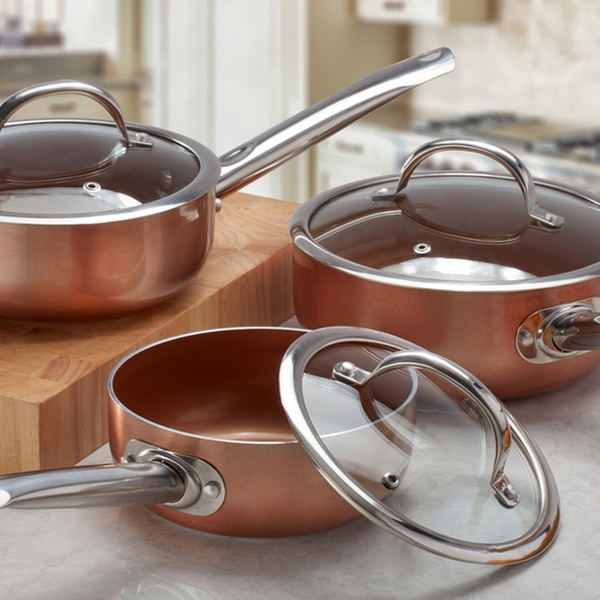 - La casserole Cooks Professional Copper Ceramic présente un design élégant associé à l’efficacité de cuisson pratique des ustensiles de cuisson revêtus de céramique