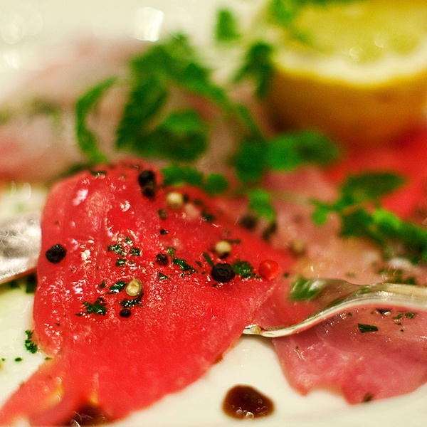- Carpaccio de bœuf à la roquette et Oud Brugge