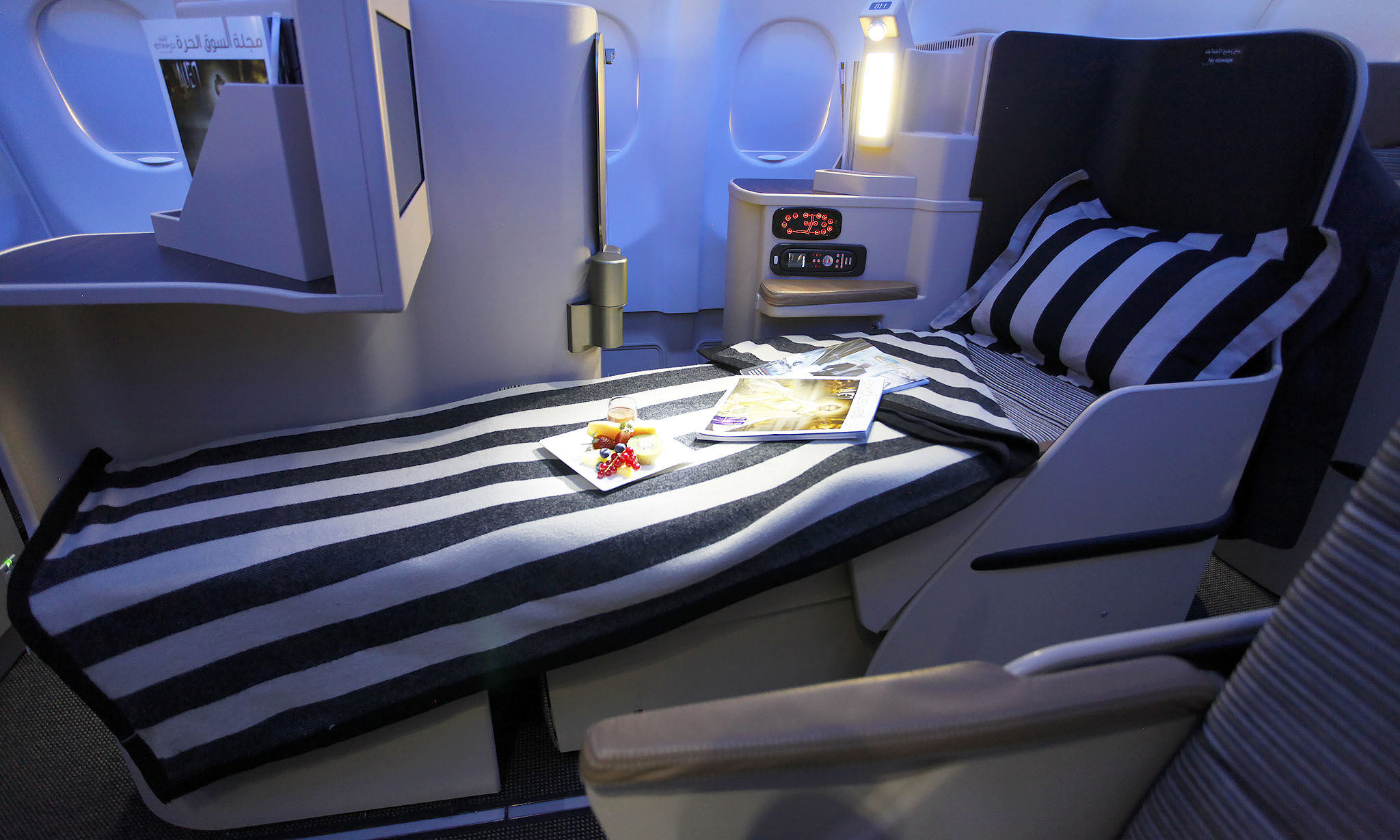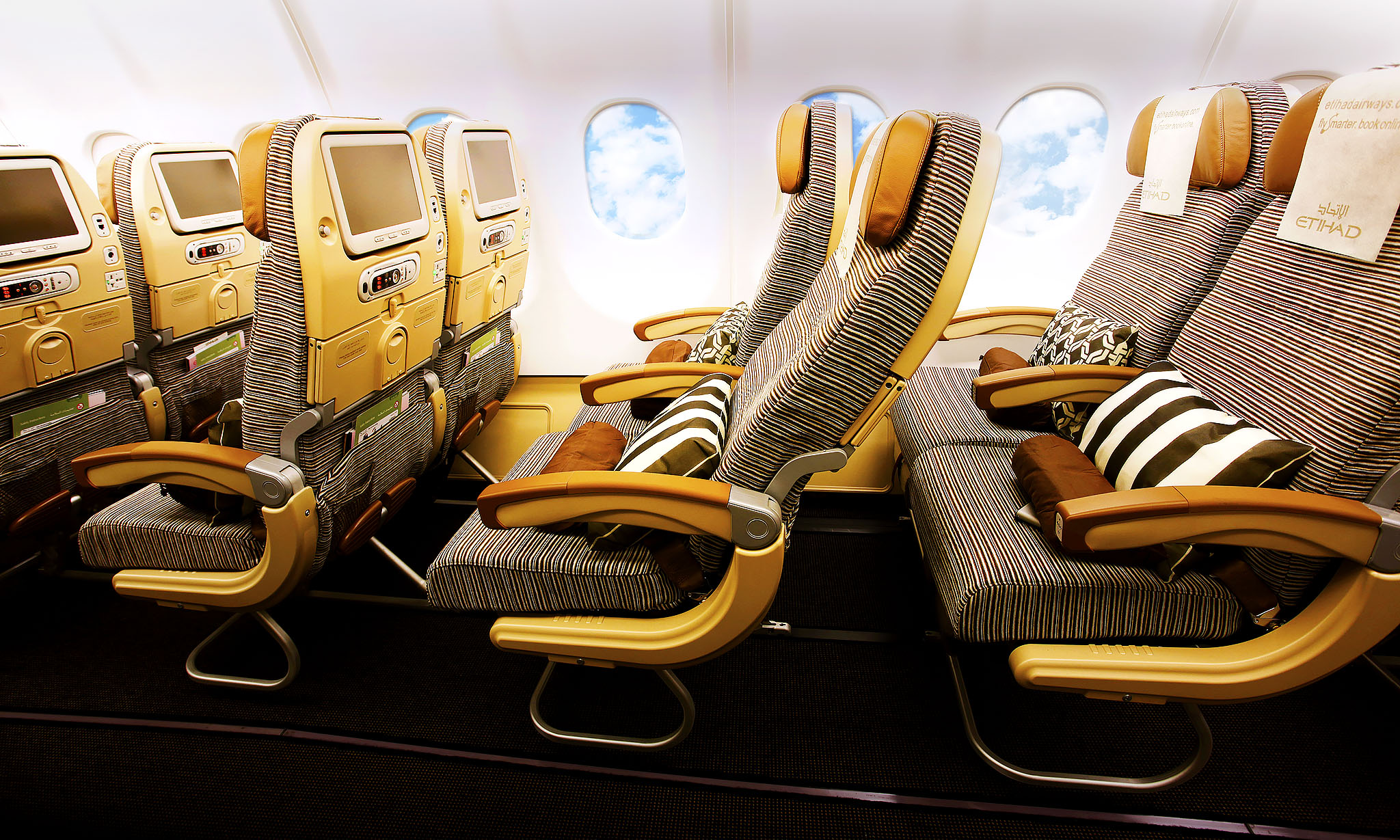Chez Etihad Airways, les services suivants sont toujours inclus dans le prix : restauration raffinée à bord et divertissement à portée de main (plus de 650 heures de films, émissions de télévision, de la musique et des jeux interactifs, affiché sur un grand écran individuel).