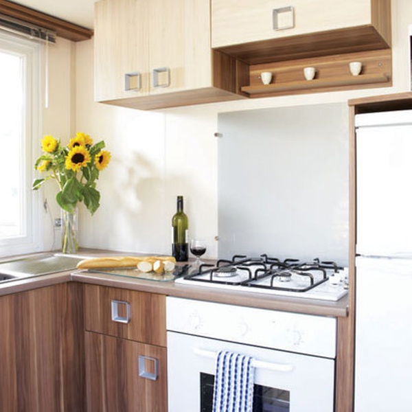 Les mobile-homes confortables peuvent accueillir jusqu’à quatre adultes et trois enfants. Tout ce dont vous avez besoin est là. Il y a deux chambres à coucher, une salle de bains, un espace de vie confortable et moderne, une cuisine entièrement équipée, une salle de douche et des toilettes.