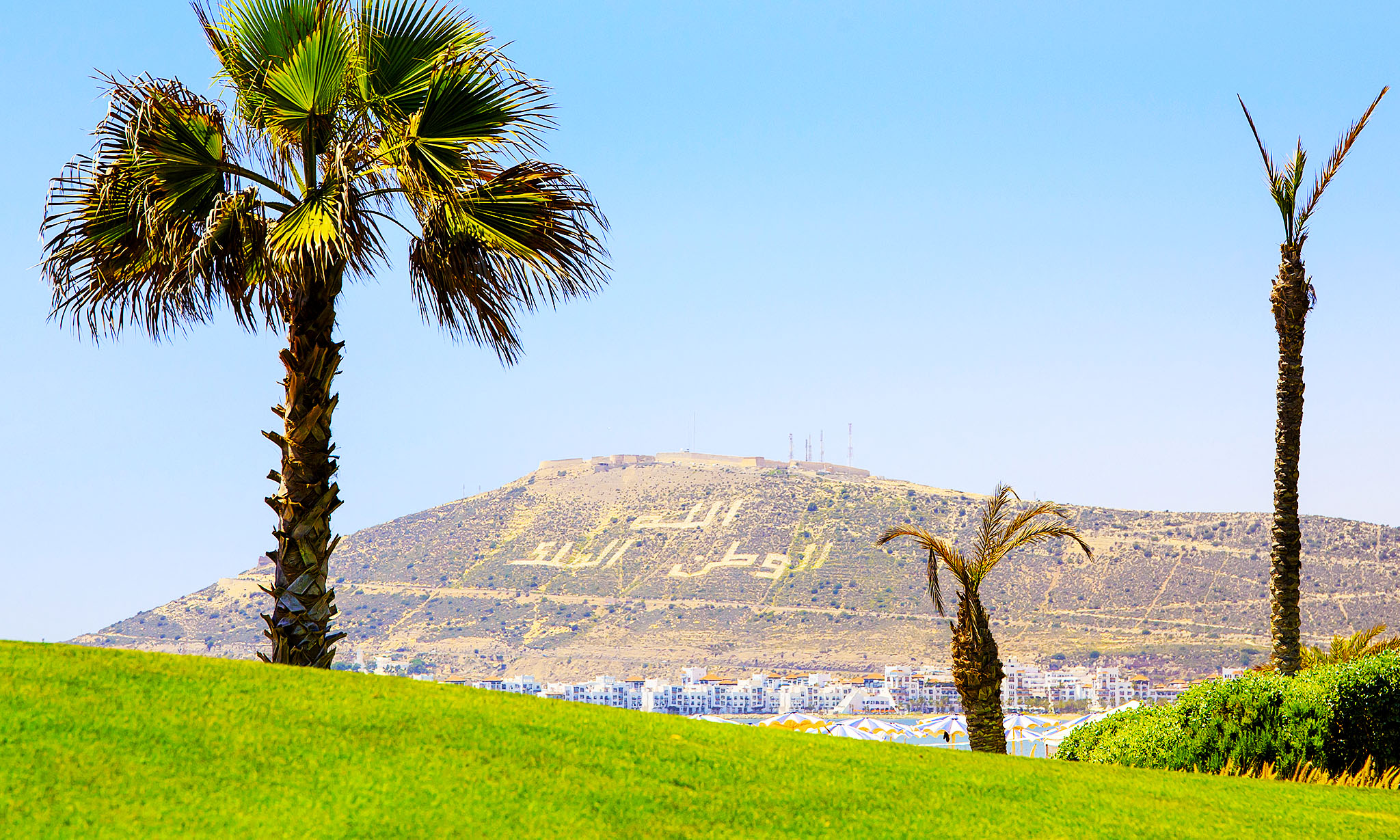 Jouissant de 300 jours d’ensoleillement par an, sans pour autant atteindre des températures trop élevées, le climat exceptionnellement doux d’Agadir et son ambiance paisible attirent de nombreux touristes et résidents étrangers tout au long de l’année. Grâce à sa plage de sable fin de 10 Km de long, Agadir n’est autre que la plus grande station balnéaire du Maroc, d’autant plus qu’une agréable promenade a été aménagée sur environ 5 Km du front de mer. Une marina rassemblant de nombreux commerces de luxe a également été construite au pied de la Casbah.
