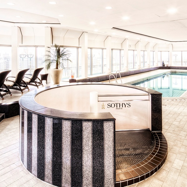 Je kan genieten in de spa van het hotel met fitness, hamam en zwembad op de hoogste verdieping.