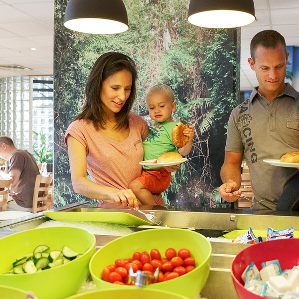 Sur place il y a plusieurs restaurants (dont un italien), un fast food et un café-brasserie, ainsi qu’un supermarché.