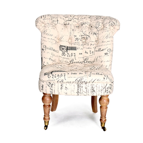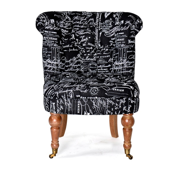 - Fauteuil style crapaud, tissu capitonné avec écritures