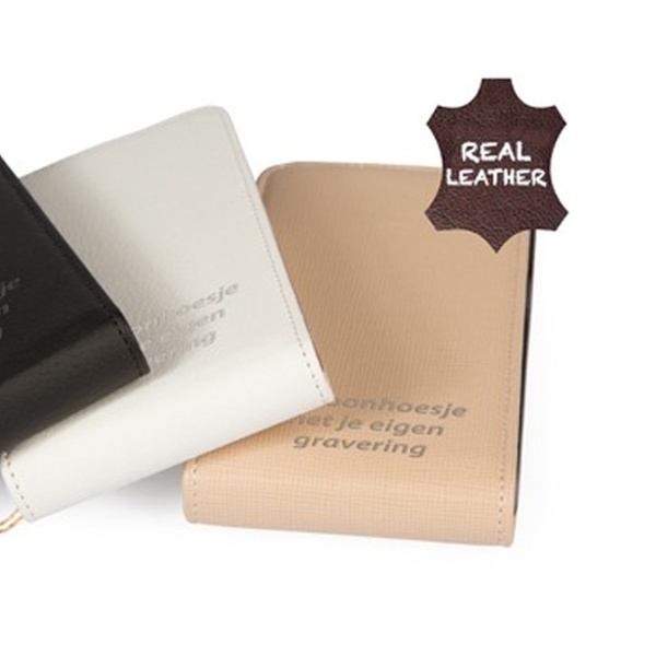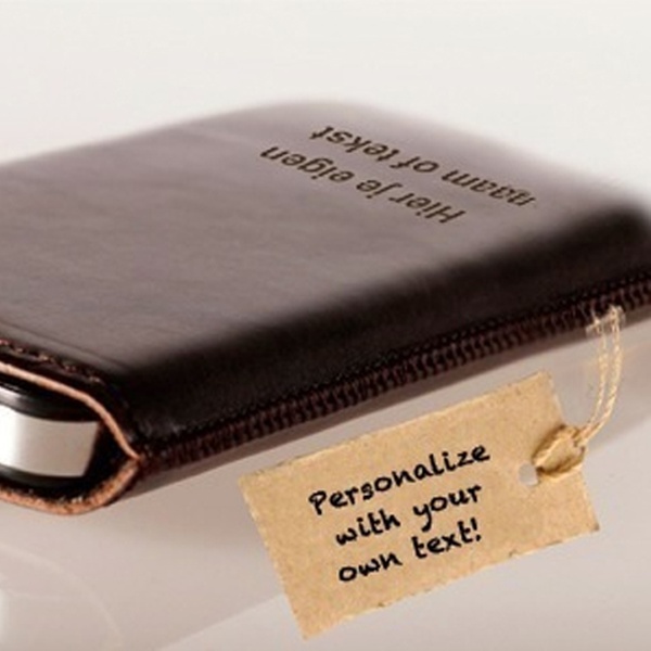 - Lederen beschermhoesje met gegraveerde tekst naar keuze