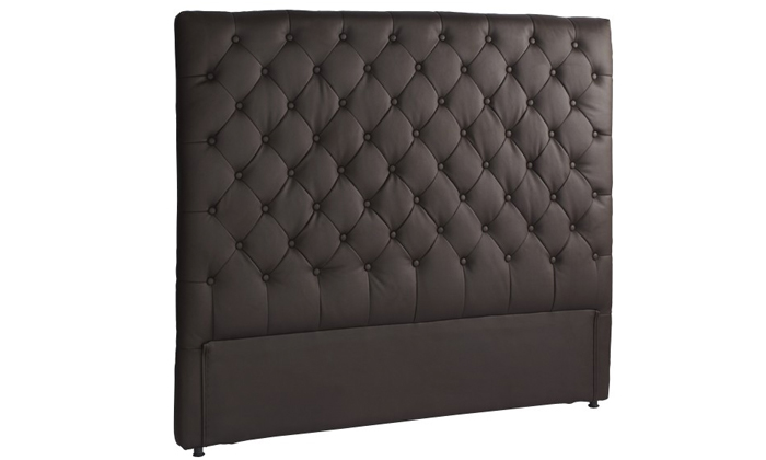 D’une hauteur de 120 cm et garnie de simili cuir matelassé, cette tête de lit en bois habillera votre chambre à coucher avec style. Elle se décline en trois teintes : chocolat, noir et blanc.