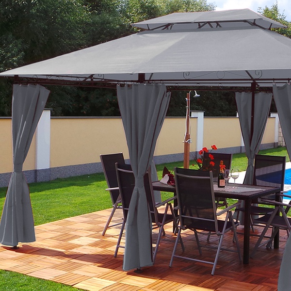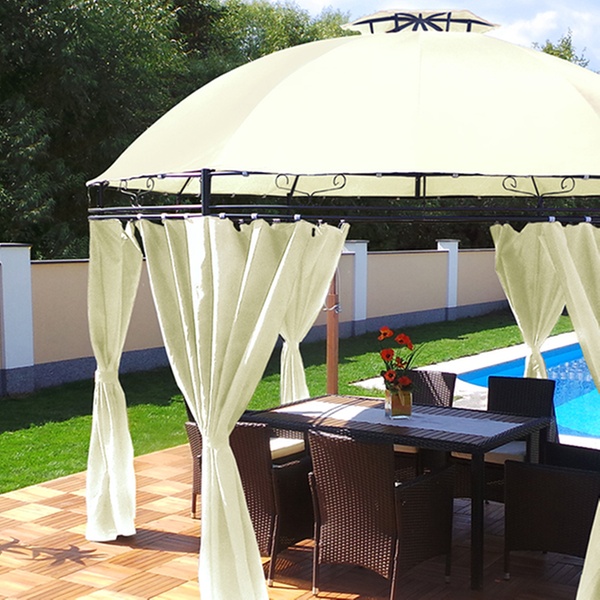 Geniet van prachtige zonnige dagen en warme zomeravonden dankzij deze gazebo, ontworpen om je tegen de zon of regen te beschermen.